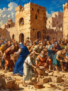 Verse 3: They said to each other, “Come, let’s make bricks and bake them thoroughly.” They used brick instead of stone, and tar for mortar.