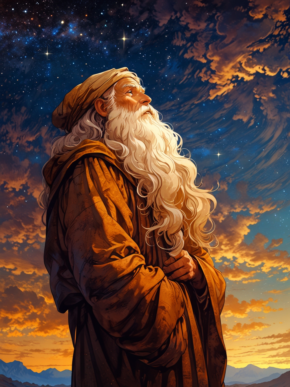 Verse 5: God sends Abram a visual tool to demonstrate his promise. He takes Abram outside and instructs him, “Look up at the sky and count the stars—if you can count them.” Imagine looking up at a wide, starry night sky. It’s impossible to count all the glittering lights! Then God gives the important message: “So shall your offspring be.” Abram’s descendants will be as many as the stars, making it impossible to count them properly.
