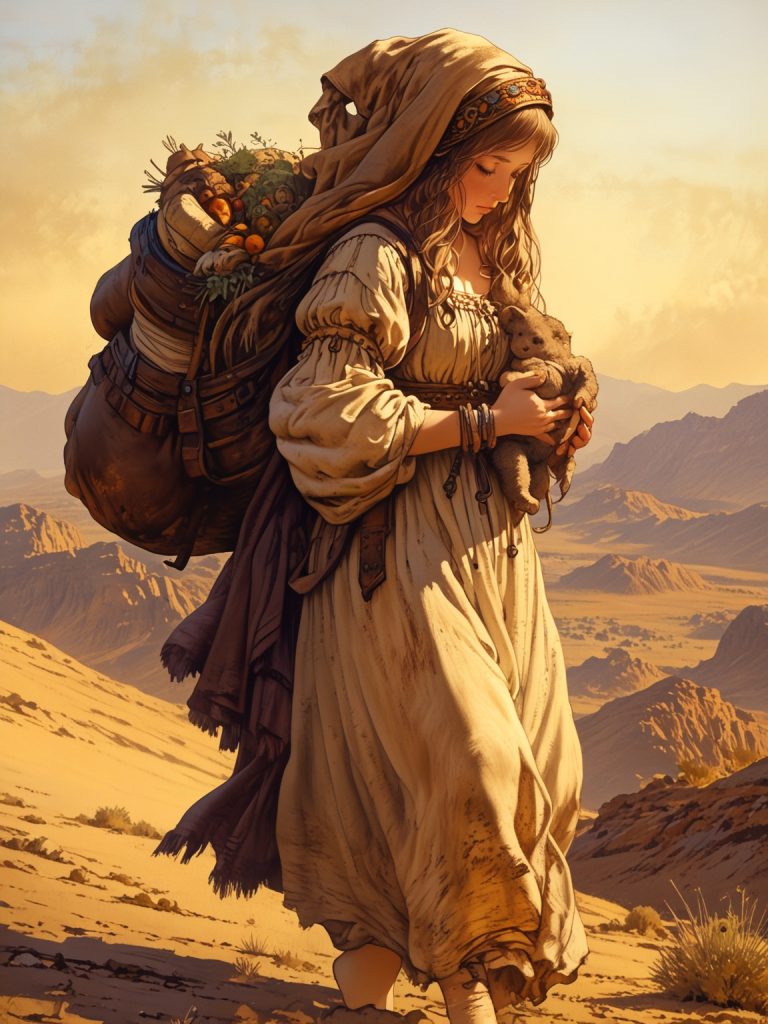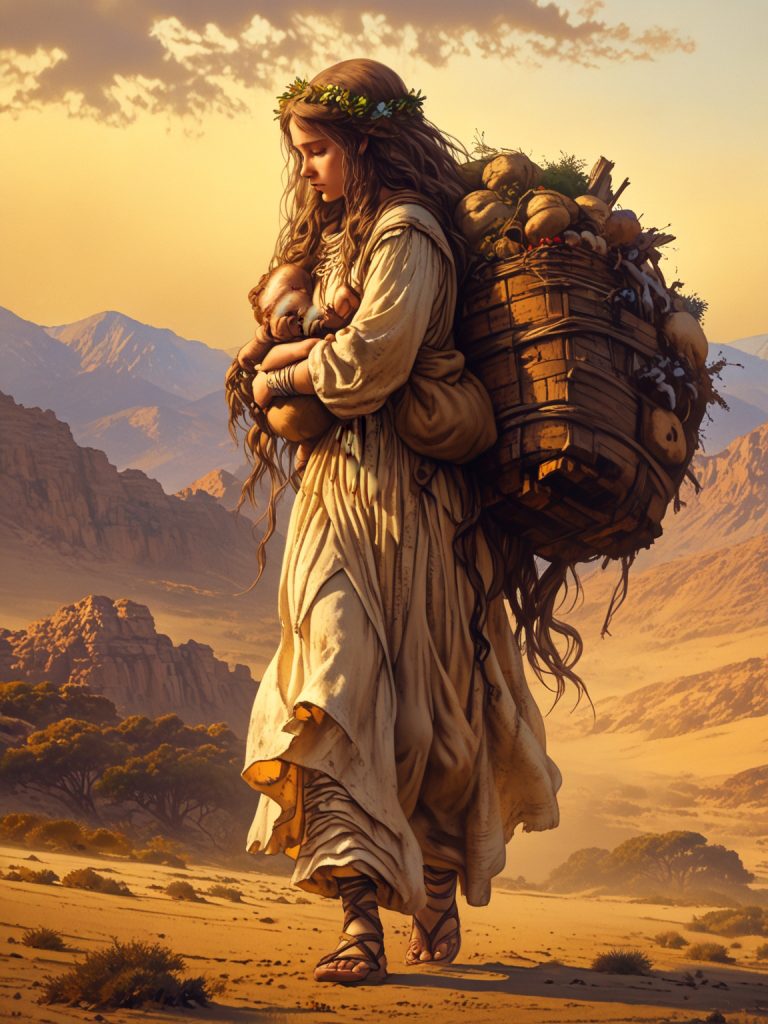 Here, we glimpse Hagar’s profound anguish and helplessness. Unable to bear witnessing her son’s suffering, she retreats to a distance and weeps. Her tears reflect the depth of a mother’s love and the anguish of feeling abandoned in the wilderness. Yet, in this moment of despair, God hears her cries and intervenes to provide for them.