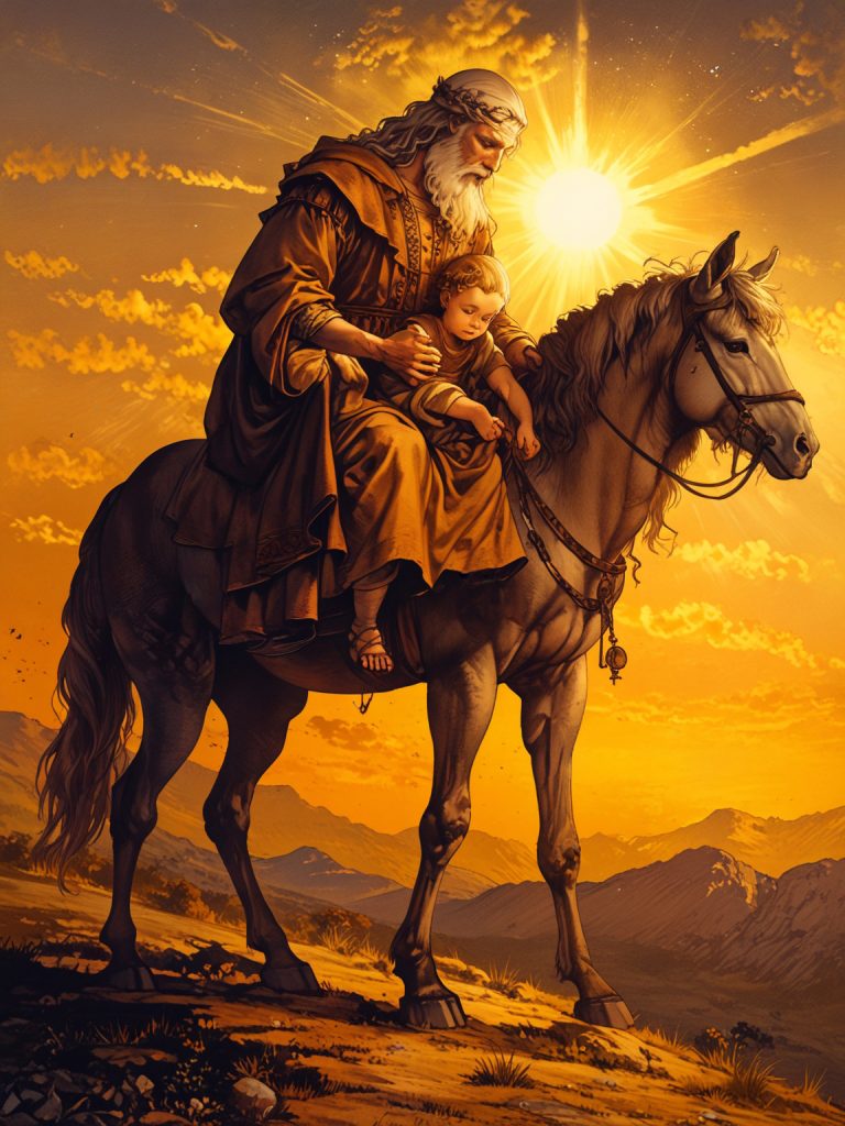 In this climactic moment, Abraham, with unwavering faith, prepares to sacrifice his beloved son, demonstrating ultimate obedience and submission to God’s will.