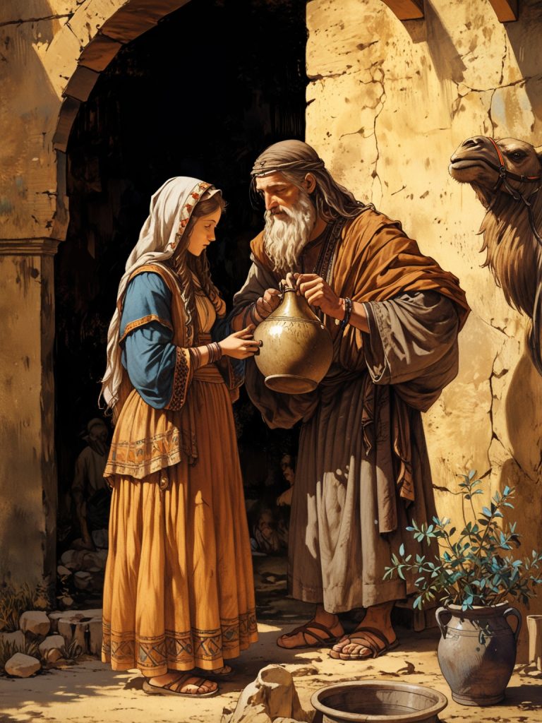 - Hospitality: Rebekah’s kindness towards the stranger is a virtue valued in this culture.