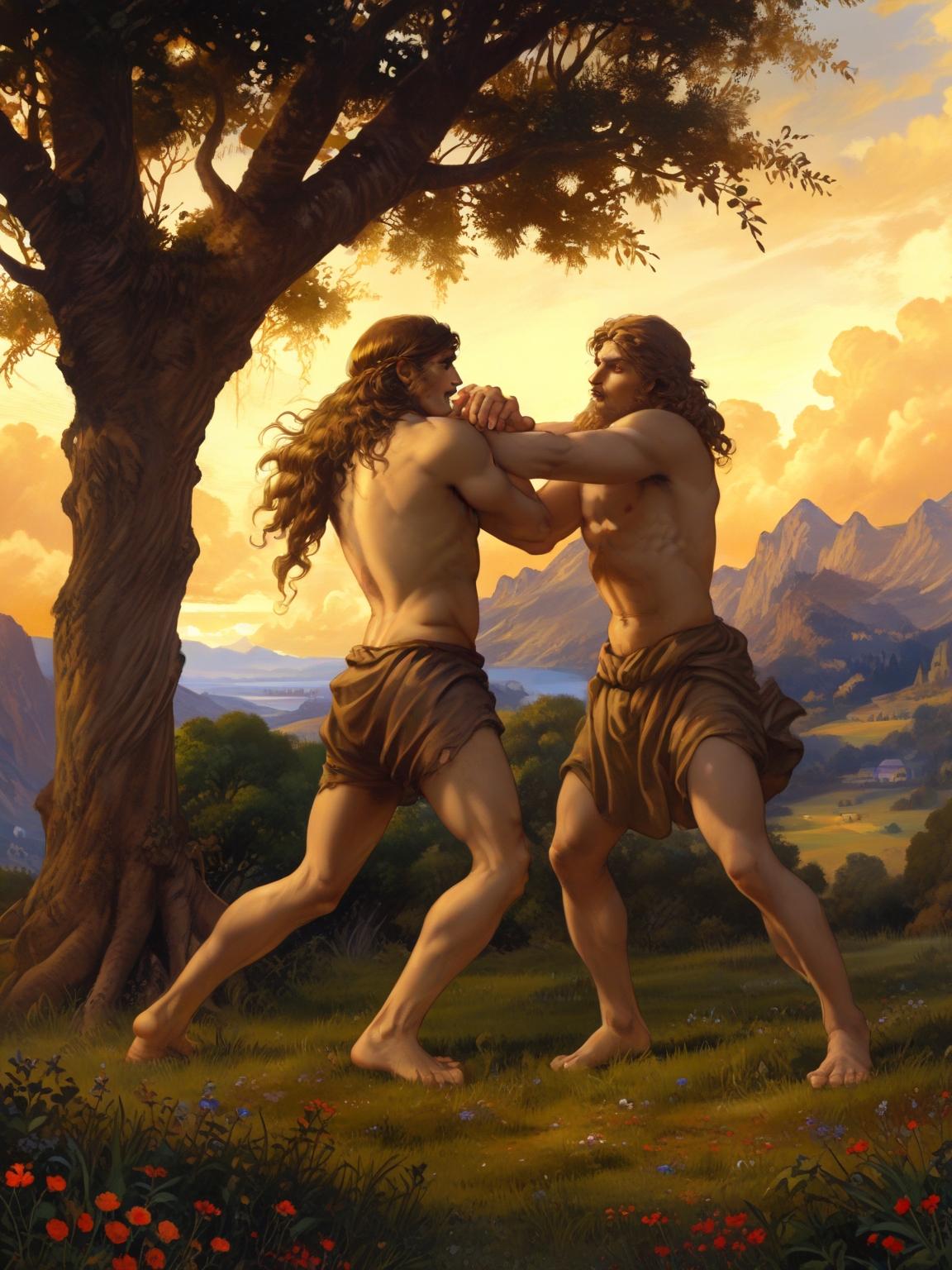 This section discusses the brothers’ various occupations. Abel became a shepherd, tending livestock, and Cain became a farmer, cultivating the soil. This could reflect their personalities, with Abel being more compassionate and caring for animals, whilst Cain took up a more physical job.