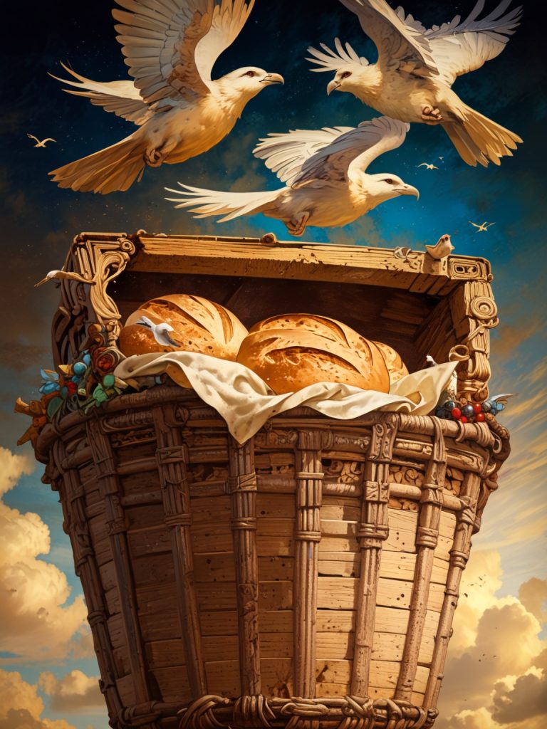 Encouraged by the cupbearer’s positive dream analysis, the baker jumps in to share his own. This dream is quite different – it features three baskets stacked on the baker’s head, filled with Pharaoh’s baked goods. But here’s the disturbing part: birds come and devour the food right out of the baskets.