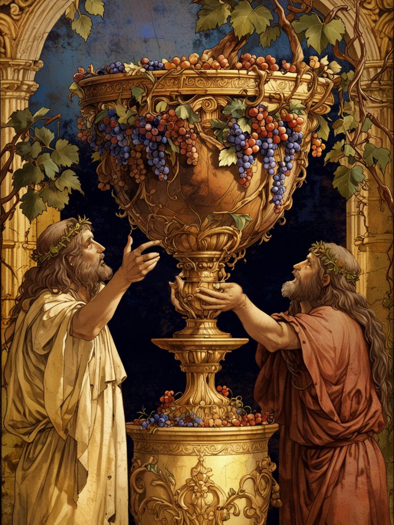 Encouraged by Joseph’s words, the cupbearer shares his dream. It’s a vivid one – a vine with three branches that blossom and produce grapes. The cupbearer then takes these grapes, squeezes them into Pharaoh’s cup, and presents it to the king.